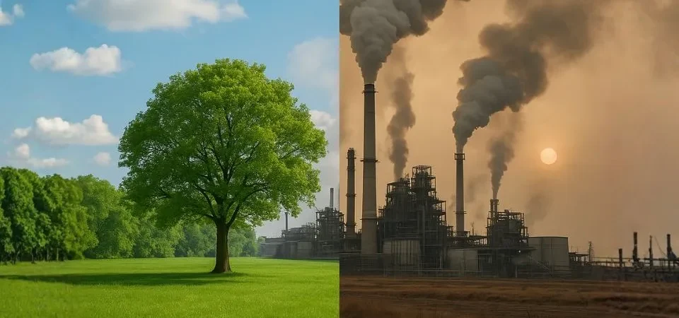 Zanieczyszczenia powietrza takie jak tlenki siarki i azotu zaburzają proces fotosyntezy. Prowadzą do spadku produkcji chlorofilu, co skutkuje żółknięciem i brązowieniem roślin, a w dłuższej perspektywie ich obumieraniem.